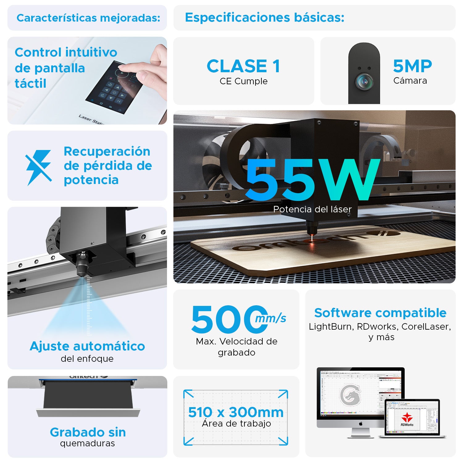 - Máquina + Enfriador de agua gratis CW5200 (disponible a partir del 20.11) / Con LightBurn / Con asistencia para descarga